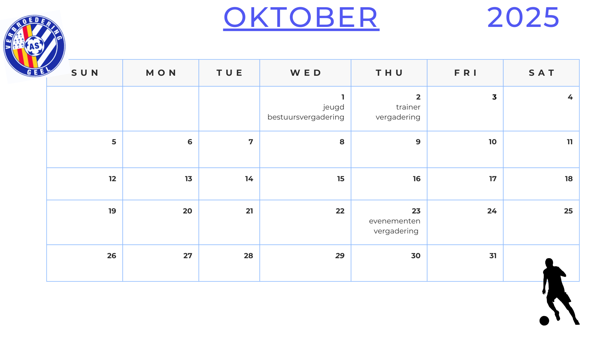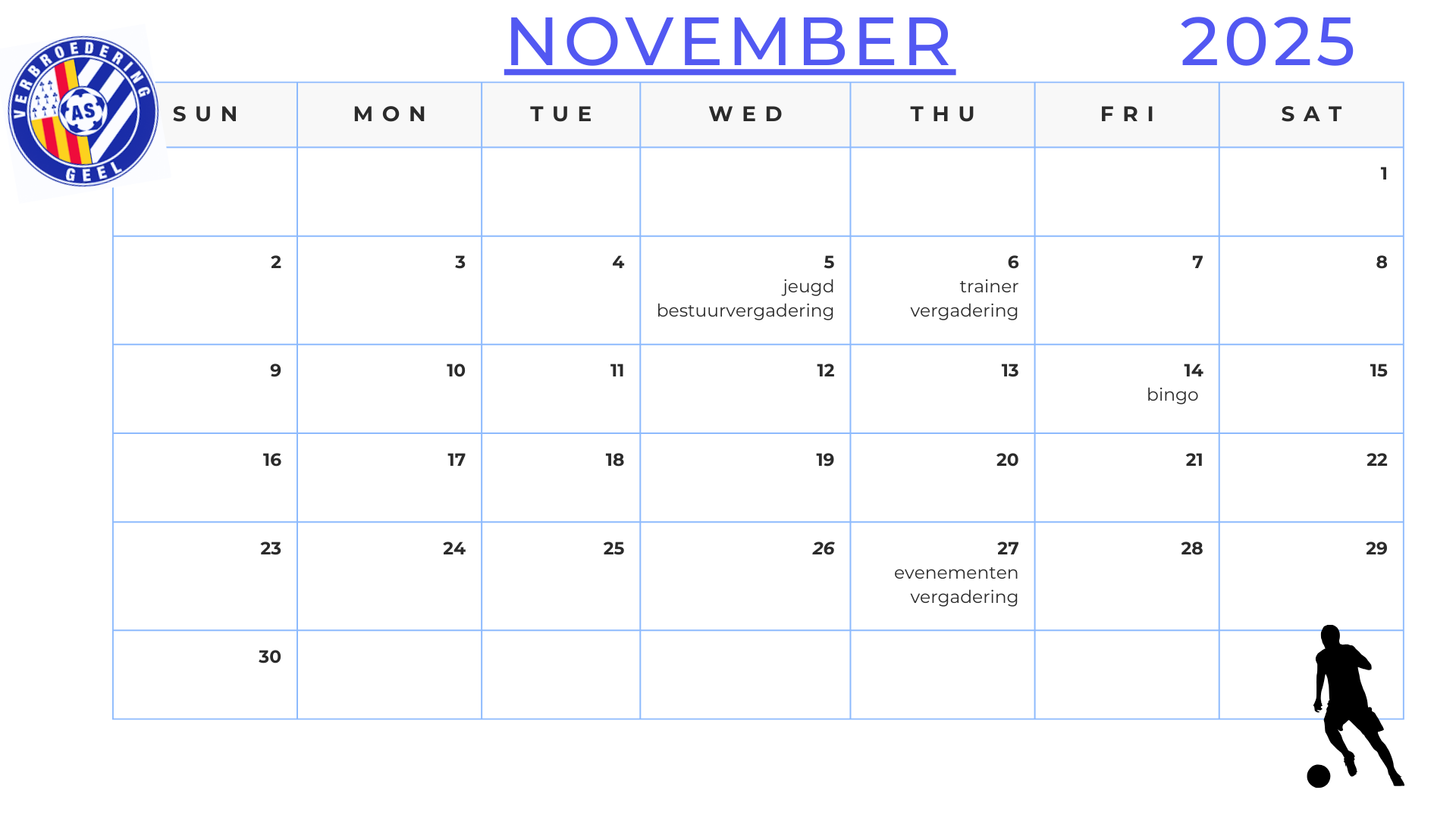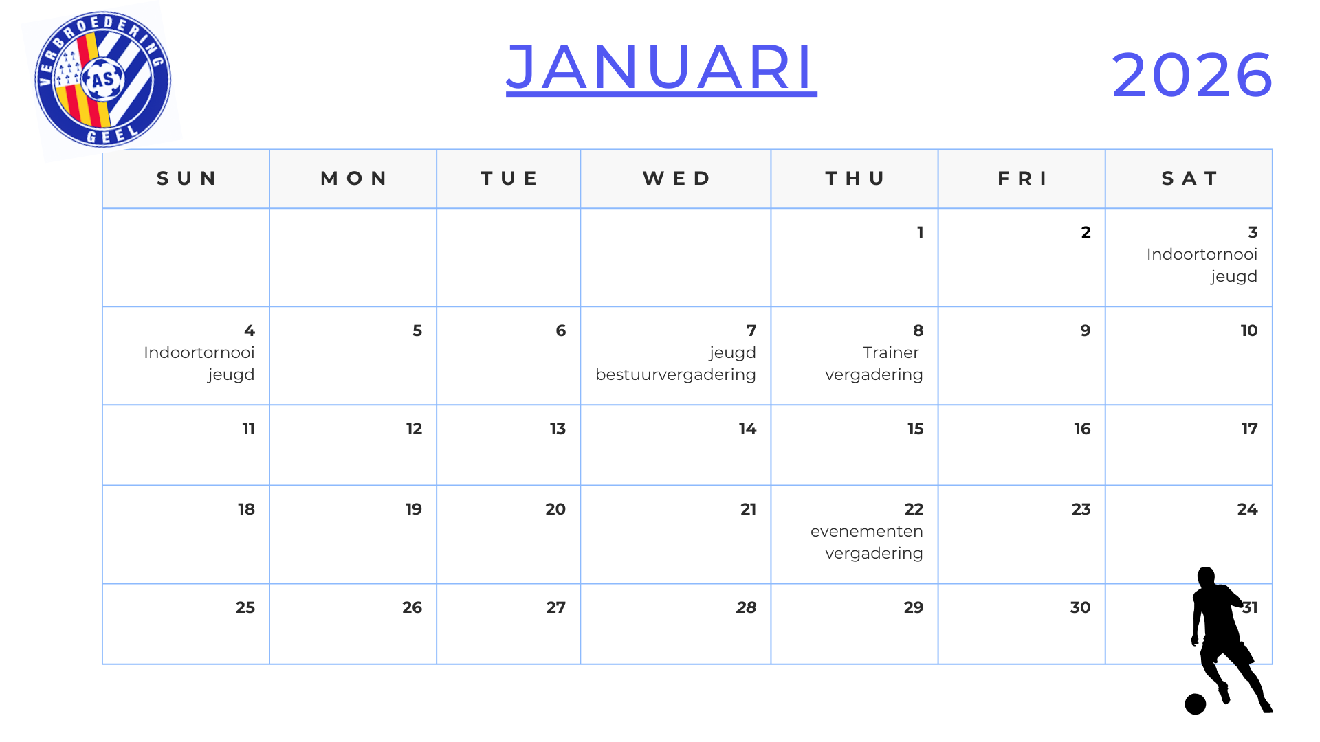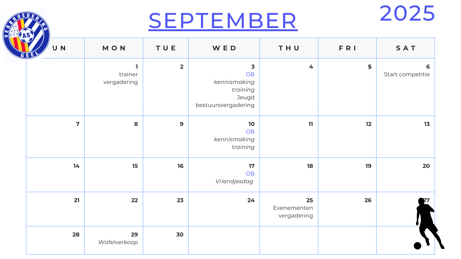 Hieronder vind je onze geplande activiteiten voor het seizoen 2025-2026.