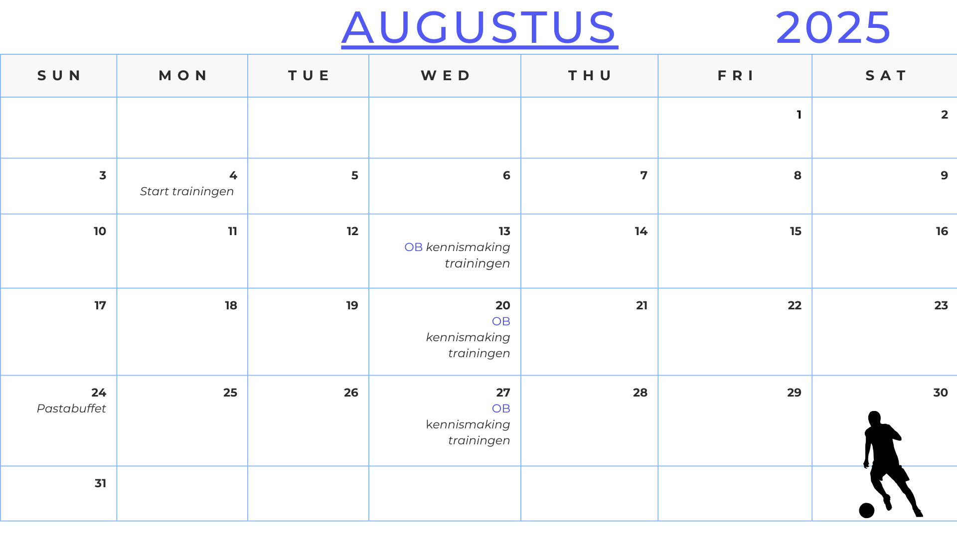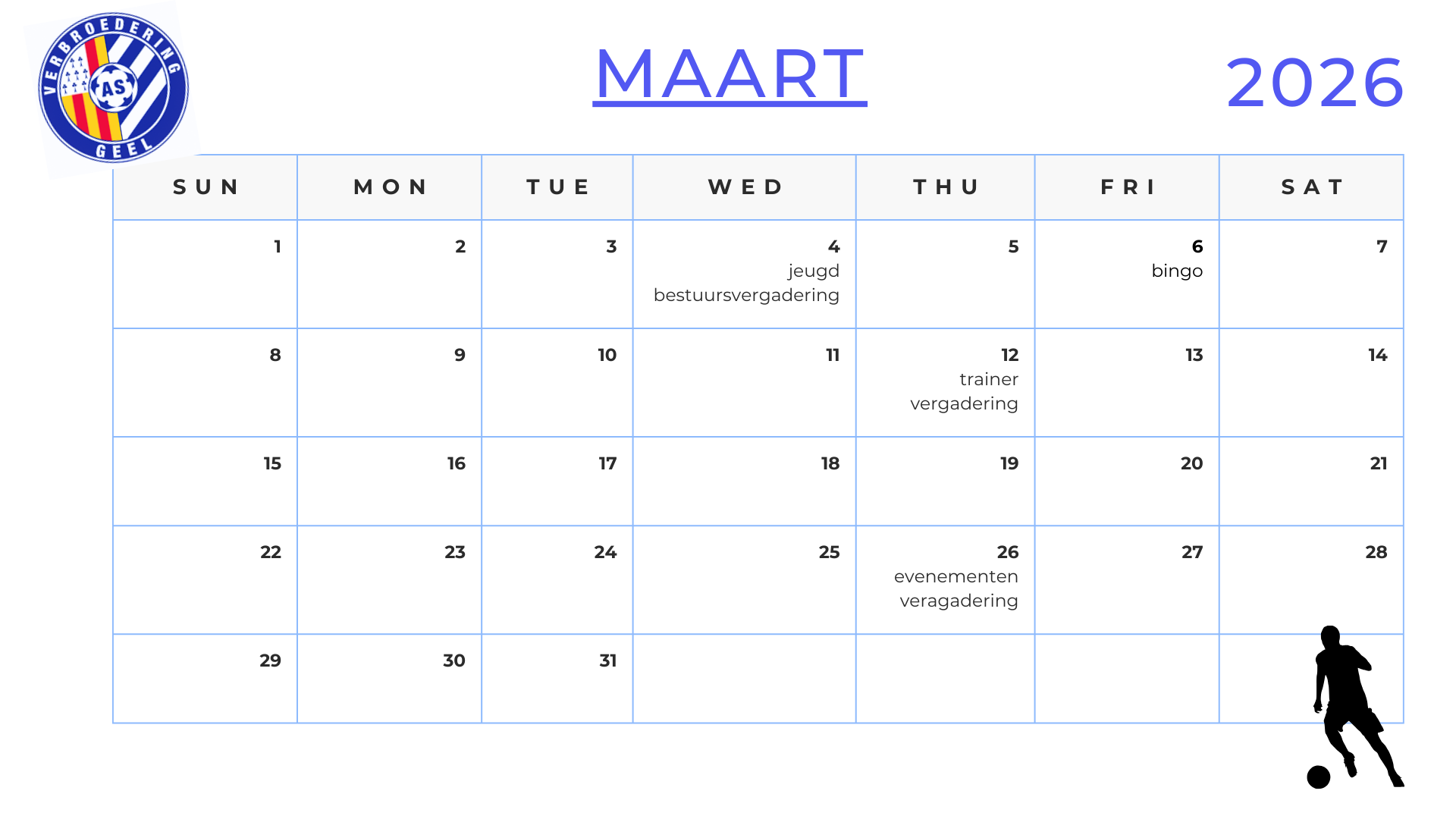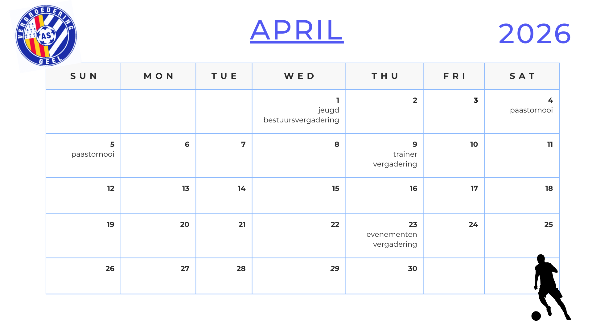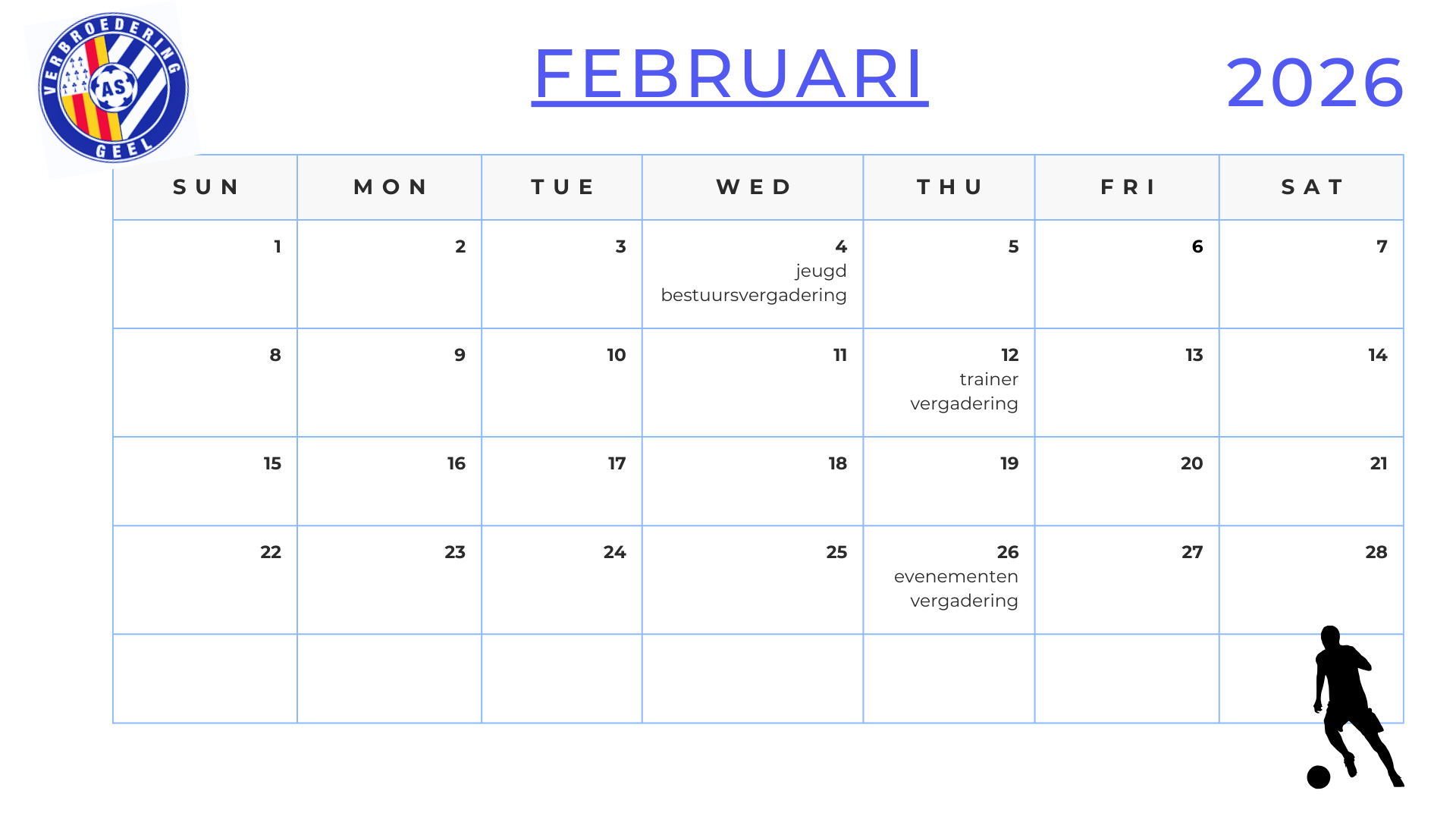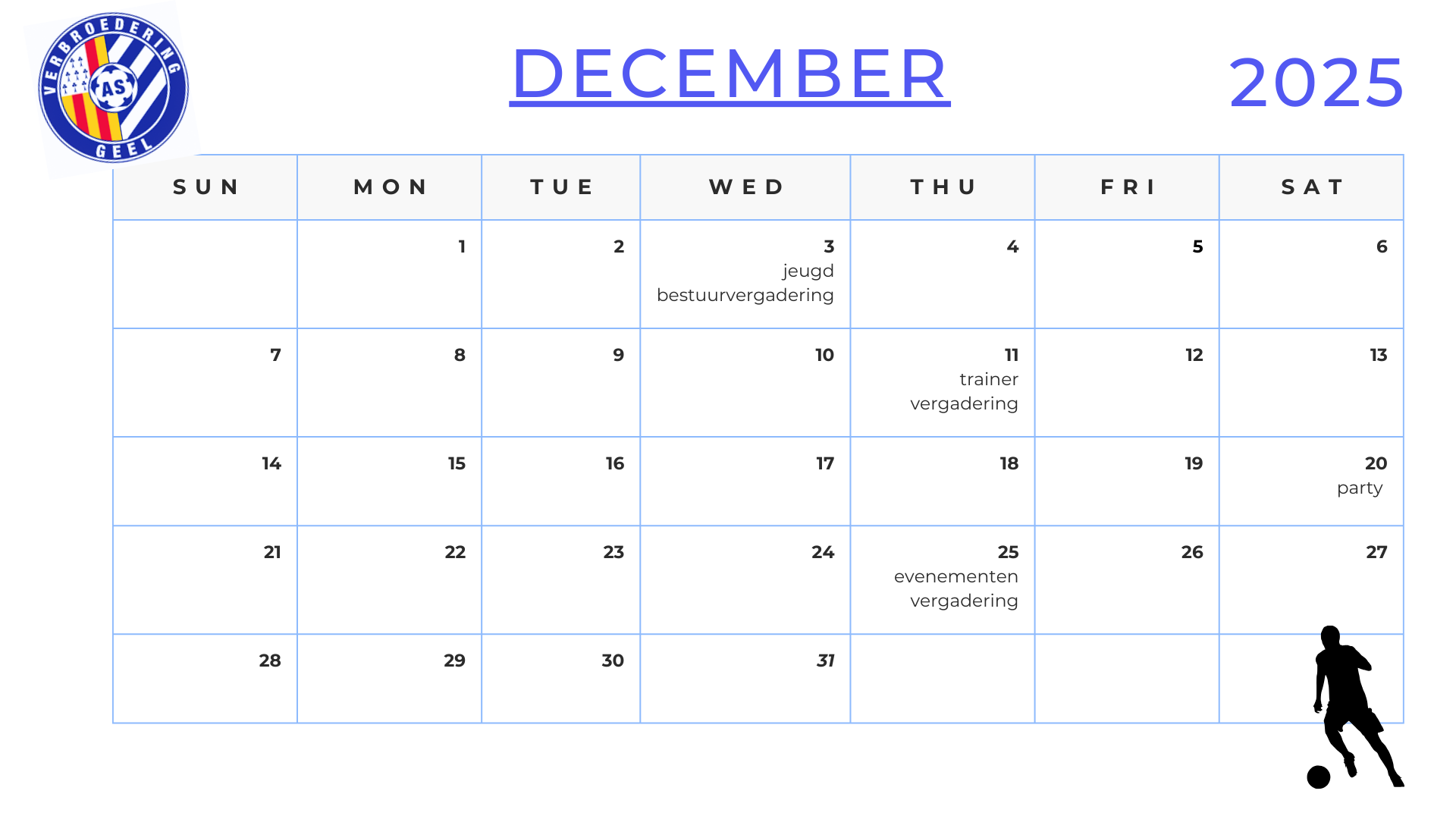 Hieronder vind je onze geplande activiteiten voor het seizoen 2025-2026.