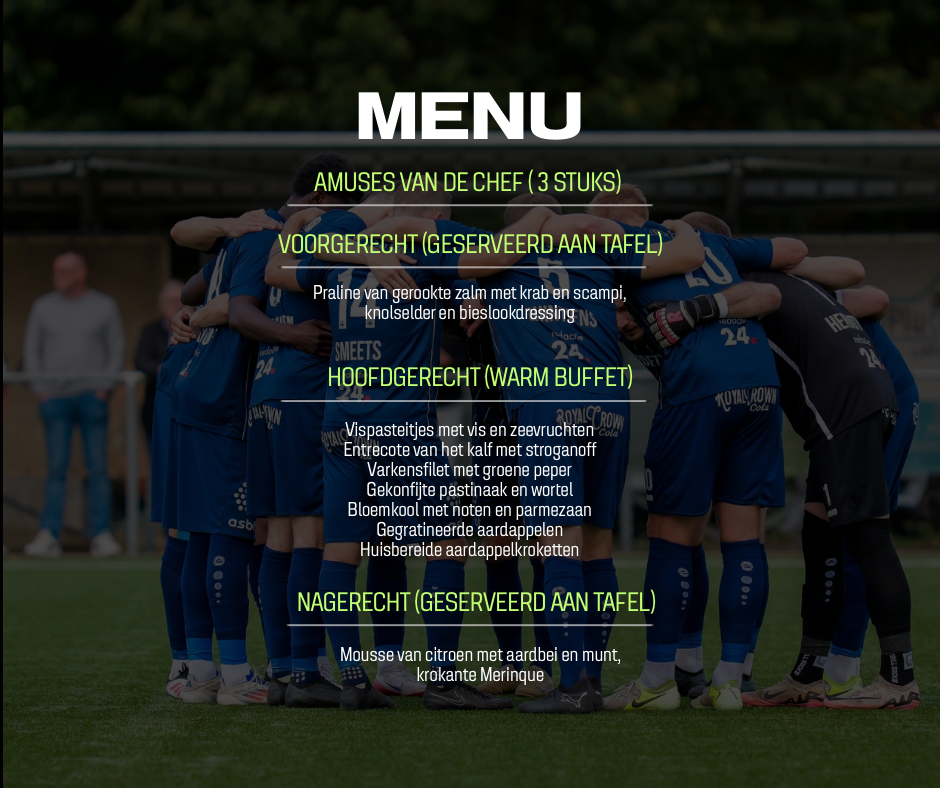 βΉοΈ Op zaterdag, 20 september spelen we onze tweede thuiswedstrijd met voorafgaand een viergangen match-diner, verzorgd door Traiteur Peter Vranckx.