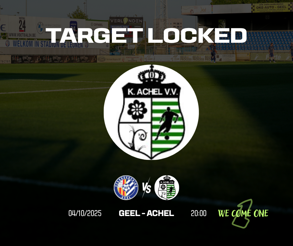 Op de zesde speeldag in 3e nationale VV B ontvangt ASV Geel zaterdag om 20:00 het Limburgse K Achel VV in het Leunenstadion.