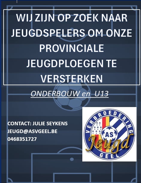 ASV Geel Jeugd is op zoek naar spelers om haar provinciale teams onderbouw en U13 te versterken.
